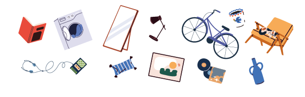 On peut y déposer : meubles, électroménager, livres, jouets, bibelots, vaisselle, vélos, matériel informatique, hi‑fi, objets de décoration, matériel de jardinage et de puériculture…